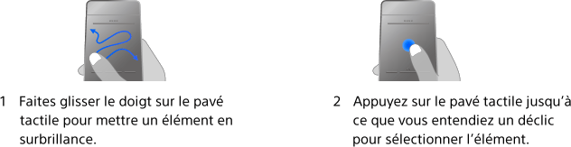 Vous pouvez régler la sensibilité du pavé tactile et activer/désactiver le Guide d’utilisation du pavé tactile. Appuyez sur la touche HOME, puis sélectionnez