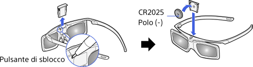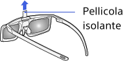 Togliere la pellicola isolante della batteria prima di utilizzare gli Occhiali 3D attivi per la prima volta.