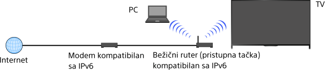 Ako je usluga vašeg dobavljača kompatibilna sa IPv6, možete da povežete ovaj TV sa internetom pomoću IPv6.