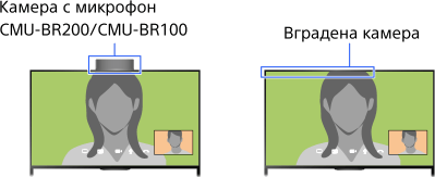 Можете да провеждате безплатни видео и гласови разговори с приятелите и семейството си навсякъде по света, удобно разположени във вашата всекидневна. Ако желаете да се обадите на приятел, който не е в Skype, можете да му се обадите по стационарната или мобилна линия през Skype. CMU-BR200/CMU-BR100 (не е доставен) не може да се използва с модел с вградена камера.