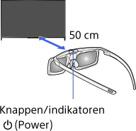 Første gang du bruger de Aktive 3D-briller, skal du holde brillerne inden for 50 cm fra tv'et, tænde for tv'et og derefter holde knappen/indikatoren