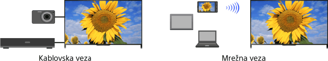 Povežite različite uređaje (npr. BD rikorder, digitalni fotoaparat, lični računar, pametni telefon, tablet) sa TV-om. Možete da uživate u reprodukovanju sadržaja kao što su slike i muzika na povezanom uređaju.