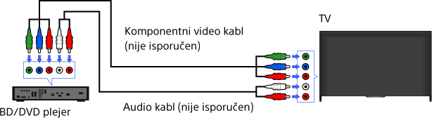 Ako vaš BD/DVD plejer ima komponentne priključke (utičnice), povežite ga sa TV-om pomoću komponentnog video kabla i audio kabla.