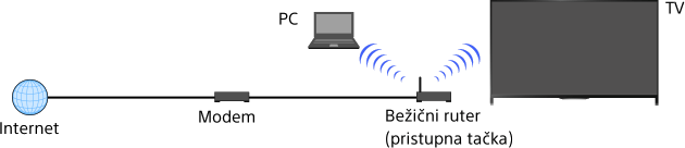 - - Propusni opseg od 5 GHz možda neće biti podržan u zavisnosti od vašeg regiona/zemlje. Ako propusni opseg od 5 GHz nije podržan, TV se može povezati sa bežičnim ruterom (pristupnom tačkom) korišćenjem propusnog opsega od 2,4 GHz.