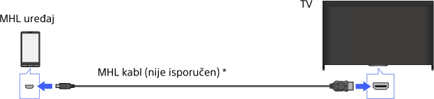 Povežite MHL uređaj (npr. pametni telefon, tablet) sa MHL izlazom sa portom HDMI IN 1/MHL TV-a, pomoću MHL kabla.