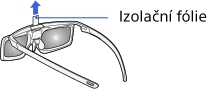 Při prvním použití aktivních 3D brýlí sejměte izolační fólii baterie.