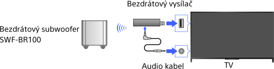 Připojte bezdrátový vysílač dodaný s bezdrátovým subwooferem SWF-BR100, abyste mohli bezdrátový subwoofer použít.