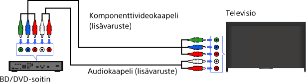 Jos BD/DVD-soittimessasi on komponenttivideoliittimet, kytke se televisioon komponenttivideokaapelilla ja audiokaapelilla.