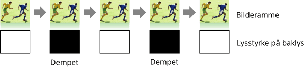 TV-en justerer lysstyrken på baklyset i henhold til [Scenevalg]-innstillingen. Du kan spare strøm ved å aktivere denne funksjonen.