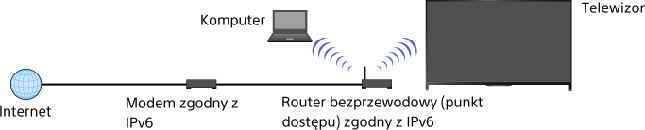 Jeśli usługa Twojego dostawcy Internetu jest zgodna z IPv6, możesz podłączyć telewizor do Internetu przez IPv6.