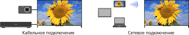 Подключите различные устройства (например, записывающее устройство BD, цифровую фотокамеру, ПК, смартфон, планшет) к телевизору. Вы можете воспроизводить такое содержимое, как изображения и музыку на подключенном устройстве.