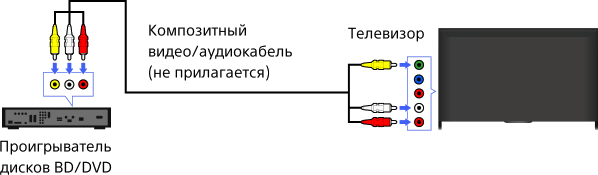 Если проигрыватель BD/DVD оснащен композитными гнездами, подключите его с помощью композитного аудио-/видеокабеля.