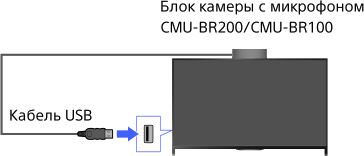 - Можно использовать только дополнительный блок камеры с микрофоном CMU-BR200/CMU-BR100. Другие модели не поддерживаются.