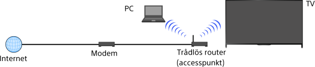 - - 5 GHz-bandet kanske inte stöds beroende på din region/land. Om 5 GHz-bandet inte stöds, kan TV:n endast anslutas till en trådlös router (accesspunkt) som använder 2,4 GHz-bandet.