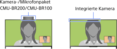 Sie können vom Wohnzimmer aus bequem und kostenlos Video- und Sprachanrufe bei Verwandten und Bekannten auf der ganzen Welt tätigen. Wenn Sie jemanden anrufen wollen, der Skype nicht nutzt, können Sie ihn mit Skype auf dem Festnetz- oder Mobilfunkanschluss anrufen. CMU-BR200/CMU-BR100 (nicht mitgeliefert) kann bei einem Modell mit integrierter Kamera nicht verwendet werden.