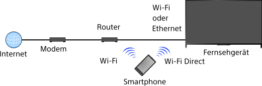 [Netzwerk] → [Wi-Fi Direct] → [Ein] auswählen, und wechseln Sie dann zur Seite [Wi-Fi Direct-Einstellungen] am Fernsehgerät, indem Sie
