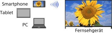 Mit der Funktion „Bildschirm spiegeln“ lässt sich der Bildschirm eines mit der Bildschirmspiegelung kompatiblen Geräts (z. B. eines Smartphones oder PCs) mithilfe der Miracast-Technologie auf dem Fernsehgerät anzeigen. Für diese Funktion ist kein drahtloser Router (Zugangspunkt) erforderlich.
