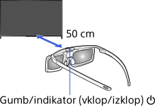 Pri prvi uporabi aktivnih očal 3D jih držite na razdalji 50 cm pred TV-jem ter vklopite TV. Nato pritisnite in 2 sekundi držite gumb/indikator (vklop/izklop)