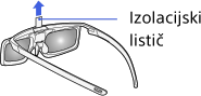 Pri prvi uporabi aktivnih očal 3D odstranite izolacijski listič pri bateriji.