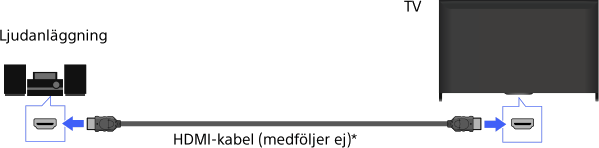 Anslut ett ljudsystem (t.ex. ett hemmabiosystem) med HDMI-utmatning till TV:n med en HDMI-kabel.