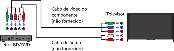 Se o seu leitor de BD/DVD possuir tomadas de vídeo componente, ligue-o ao televisor, utilizando um cabo de vídeo componente e um cabo de áudio.