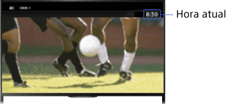 A hora atual é definida automaticamente se o televisor receber a hora de um sinal de emissão digital. Se o televisor não conseguir receber um sinal de emissão digital, defina a hora atual manualmente.