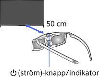 När de aktiva 3D-glasögonen används första gången ska du hålla glasögonen inom ett avstånd på 50 cm från TV:n, slå på TV:n och hålla in