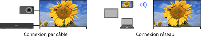 Connectez divers appareils (graveur BD, appareil photo numérique, ordinateur, smartphone, tablette, par exemple) au téléviseur. Cela vous permet de lire le contenu stocké sur l’appareil connecté, notamment des photos et de la musique.