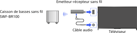 Vous pouvez utiliser le caisson de basses sans fil SWF-BR100 en option pour étendre la réponse en graves du son du téléviseur.