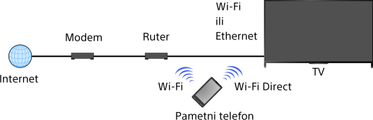 (Kada koristite daljinski upravljač sa dodirnom tablom, pritisnite dodirnu tablu. Zatim, pritisnite ponovo dodirnu tablu da biste otišli na „Povezivanje na internet“ za detalje.)Povežite smart mobilni uređaj na kućnu mrežu na koju je povezan TV.