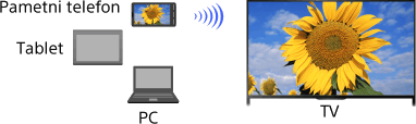 „Preslikavanje ekrana“ je funkcija za prikaz ekrana uređaja kompatibilnog sa funkcijom Preslikavanje ekrana (kao što su pametni telefon ili lični računar) na TV-u pomoću Miracast tehnologije. Bežični ruter (pristupna tačka) nije neophodan za korišćenje ove funkcije.