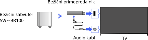 Povežite bežični primopredajnik isporučen uz bežični sabvufer SWF-BR100 da biste koristili bežični sabvufer.