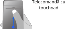 (Când utilizaţi telecomanda cu touchpad, atingeţi şi glisaţi în sus cu degetul de la zona de la bază.)