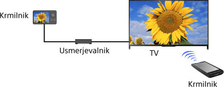 S funkcijo renderer lahko predvajate fotografije/glasbo/video datoteke v krmilniku (npr. digitalnem fotoaparatu) na zaslonu televizorja po neposredni povezavi z napravo. V domačem omrežju lahko za daljinski upravljalnik televizorja uporabite tudi mobilno napravo (npr. pametni telefon).