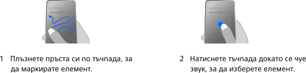 Докоснете и задръжте с пръст в центъра на тъчпада, за да се покаже Наръчникът за работа с тъчпад, който показва възможните жестове за текущия ТВ екран.