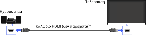 Συνδέστε ένα ηχοσύστημα (π.χ. ένα σύστημα οικιακού κινηματογράφου) με έξοδο HDMI στην τηλεόραση, χρησιμοποιώντας ένα καλώδιο HDMI.