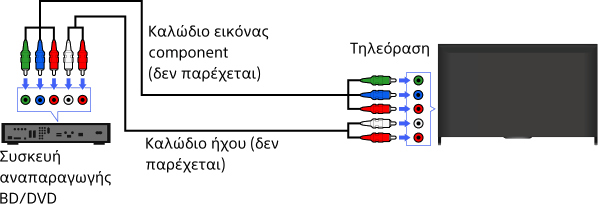 Αν η συσκευή αναπαραγωγής BD/DVD που διαθέτετε έχει υποδοχές εικόνας component, συνδέστε την στην τηλεόραση χρησιμοποιώντας ένα καλώδιο εικόνας component και ένα καλώδιο ήχου.