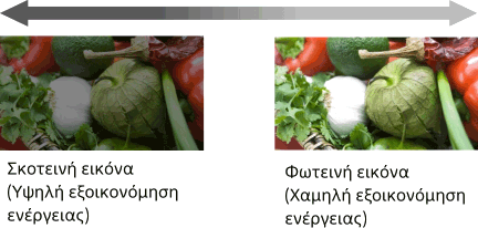 - Χαμηλή εξοικονόμηση ενέργειας. Η εικόνα σκουραίνει αμυδρά.