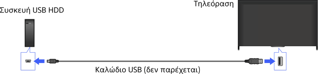 - Δεν υποστηρίζεται η σύνδεση μιας συσκευής USB HDD μέσω διανομέα USB. Συνδέστε τη συσκευή απευθείας με την τηλεόραση.
