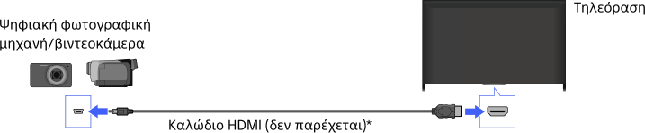 Συνδέστε την ψηφιακή φωτογραφική μηχανή ή την βιντεοκάμερα της Sony που διαθέτετε χρησιμοποιώντας ένα καλώδιο HDMI. Χρησιμοποιήστε ένα καλώδιο με βύσμα HDMI mini για τη σύνδεση σε ψηφιακή φωτογραφική μηχανή/βιντεοκάμερα και τυπικό βύσμα HDMI για σύνδεση σε τηλεόραση.