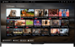 - Μπορείτε να προβάλετε μικρογραφίες ζωντανών και μελλοντικών μεταδόσεων καθώς και εγγεγραμμένου περιεχομένου. Επιλέξτε την επιθυμητή υποκατηγορία για να αλλάξετε την πηγή. Επίσης, μπορείτε να αλλάξετε το σύστημα μετάδοσης χρησιμοποιώντας το στοιχείο [Λίστα καναλιών] στο κάτω μέρος του Μενού Home.