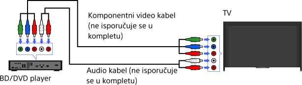 Ako vaš BD/DVD player ima komponentne videopriključke, priključite ga na televizor komponentnim videokabelom i audiokabelom.