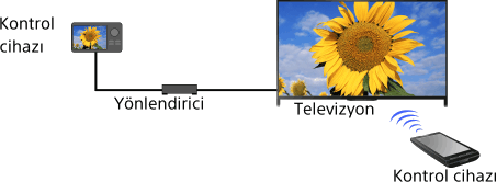 Renderer işlevini etkinleştirerek, bir kontrol cihazındaki (örn. dijital fotoğraf makinesi) fotoğraf/müzik/video dosyalarını kontrol cihazını doğrudan kullanarak oynatabilirsiniz. Ayrıca, bir mobil cihaz (örn. akıllı telefon) ev ağı üzerinden televizyonun uzaktan kumandası olarak da çalışabilir.