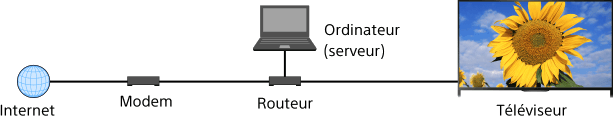 Vous pouvez lire des fichiers photo/audio/vidéo stockés sur un serveur (par exemple, un ordinateur) connecté au même réseau domestique que le téléviseur.