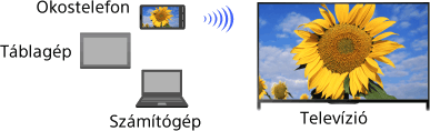 Ha az okostelefon kapcsolódott a tv-készülékhez, az okostelefonon látható tartalom jelenik meg a tv-készüléken is.