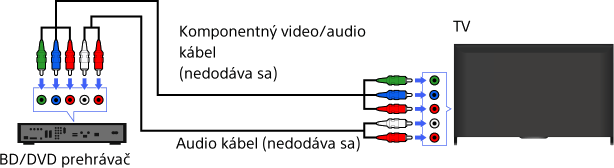 Ak má váš prehrávač BD/DVD komponentné video konektory, pripojte ho k TV prijímaču pomocou komponentného video kábla a audio kábla.