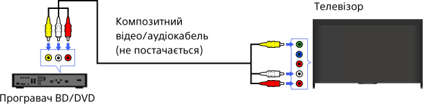 Якщо програвач BD/DVD має композитні роз’єми, підключайте його за допомогою відео/аудіокабелю.