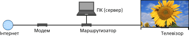 Можна відтворювати фотографії, музичні композиції та відеофайли з сервера (наприклад, із ПК), підключеного до тієї ж домашньої мережі, що й телевізор.
