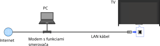 Pripojenie ku káblovej sieti LAN vám umožní pripojenie k Internetu a vašej domácej sieti. Pripojte LAN kábel k vášmu TV prijímaču.