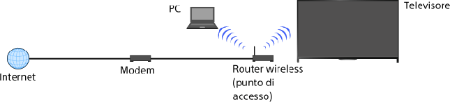 - - La disponibilità della banda 5 GHz dipende dai paesi e dalle aree geografiche. Se la banda 5 GHz non è supportata, il televisore può connettersi a un router wireless (punto di accesso) solamente utilizzando la banda 2,4 GHz.